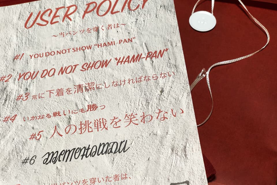 《YOU DO NOT SHOW “HAMI-PAN”》、つまり紳士的ではないからうちのパンツでハミパンはダメよ――という信念を私なりに解釈するとなると、こういうことになる。