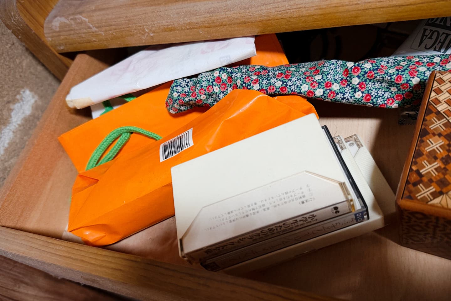 その頃よく聴いていたレコードや録音したカセットテープ、あるいは鉛筆やセロテープや画鋲といった文房具、それから空瓶のヘリオトロープの香水、窓拭き用の洗浄スプレーなどが机の上や引き出しの中に放置され、雑用品の物置き場として長年骨董化していたのだった。